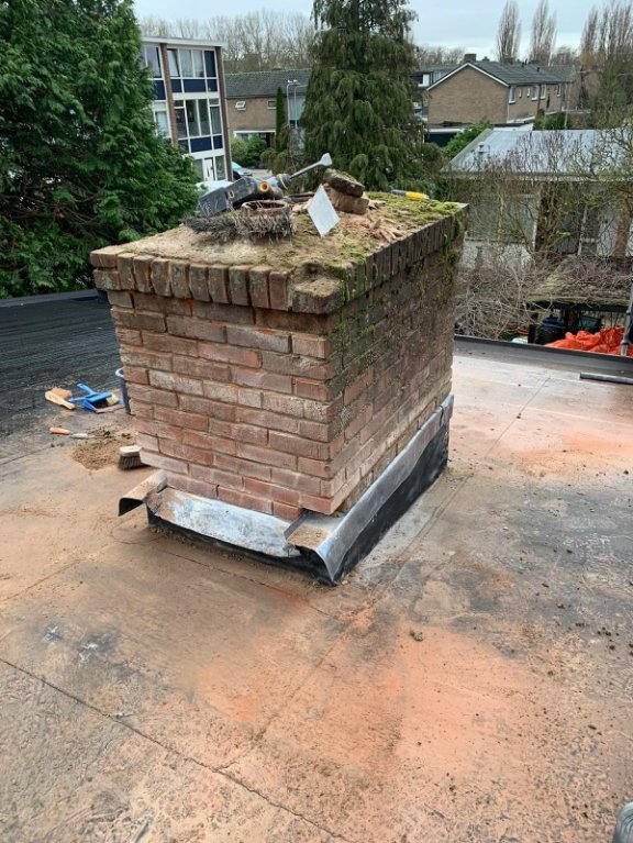 Het resultaat is een nette afwerking en een schoorsteen die weer goed beschermd is tegen regen en wind.